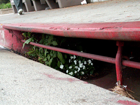 Here are two pictures (c. 2002) of nature doing what it likes, and probably slowly destroying the sewer systems.